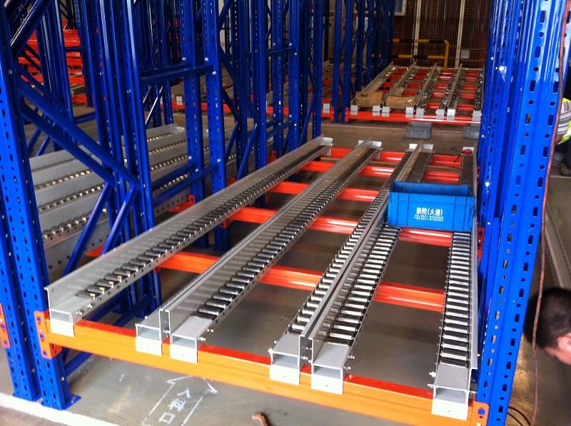 產(chǎn)品描述:流利貨架一般采用滾輪式鋁合金或鈑金流利條,呈一定坡度(3°左右)放置。貨物通常為紙包裝或?qū)⒇浳锓庞谒芰现苻D(zhuǎn)箱內(nèi),利用其自重實(shí)現(xiàn)貨物的流動(dòng)和先進(jìn)先出,貨物由小車進(jìn)行運(yùn)送,人工存取,存取方便,單元貨架每層載重量通常在100KG左右,貨架高度在2.5米以內(nèi),分之幾格放置產(chǎn)品。